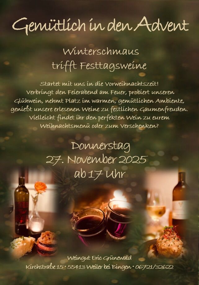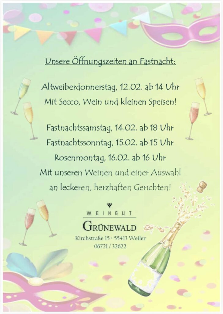 Bestellungen nehmen wir gerne entgegen unter weingutgruenewald@gmx.de oder Telefon 06721 32622.